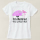 Flamingo de pelouse rose pastel debout fièrement devant un camper de larme rétro rose. Le texte dit que je suis à la retraite, voici comment je roule. Tshirt Whimsical retraite mème recommandé pour RVers à temps plein ou toute personne qui est un passionné de camping ou de snowbird.
