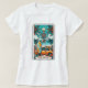 Un drôle de design de carte de tarot sorcière qui dit Stay Salty et un squelette tenant une planche de surf sur une plage
