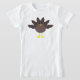 Ce t-shirt présente un drôle de dessin d'une dinde aux grands yeux noirs, un petit bec jaune et des plumes de queue qui collent. Les pieds sont orientés dans des directions opposées, ce qui rend la dinde maladroite. Ce design amusant est idéal pour Thanksgiving.Le design est montré sur un tee-shirt blanc pour enfants mais est aussi disponible sur d'autres styles et couleurs de vêtements pour enfants, bébés, femmes et hommes.