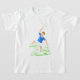 Un T-shirt blanc gainé court avec une image peinte à la main d'un garçon jouant au tennis.