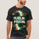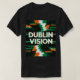 “DUBLIN VISION” commands the center in bold white caps as green and orange graphic bars explode outward in a tunnel of motion. Subtle glitch offsets and chromatic streaks add retro-futuristic edge, creating a kinetic burst of drama, focus, and urban intensity.
