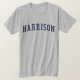 Le T-shirt d'université de Harrison avec effacé et a affligé le lettrage de marine.