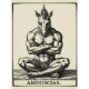 Amduscias appears as a haunting hybrid, a human form crowned with a horned equine head, seated in quiet contemplation. Arms folded, he embodies restrained power and inner tension, while unseen music lingers, evoking mystery, sorrow, and otherworldly presence.