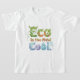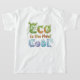This eye-catching design features the phrase "Eco Is the New Cool." brought to life with a stunning, nature-inspired, multi-color aesthetic. Each word is uniquely rendered to reflect environmental themes: