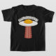 Illustration vectorielle d'un délicieux côté ensoleillé vers l'OVNI frit avec un délicieux faisceau de tracteur tranche de bacon avec le texte EGGSTRATERRESTRIAL. Mots-clés : oeuf, bacon, petit-déjeuner, OVNI, alien, ensoleillé, côté, dessin animé, espace, extraterrestre, nourriture, mignon, jaune, science, fiction, martien, humour, viande, porc, enlèvement