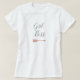 Un simple t-shirt blanc avec une flèche rose en bas où au-dessus, vous pouvez le personnaliser avec un logo, un nom ou une lettre ou simplement garder comme il est avec la phrase "Girl Boss". Thème girly moderne.