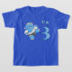 Thème sportif mignon design de troisième anniversaire avec un éléphant bleu mignon tenant un football et courant pour marquer un toucher.