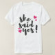 Célébrez l'un des moments les plus inoubliables de la vie avec ce magnifique design basé sur le texte « Elle a dit oui ! ». Parfait pour les annonces de fiançailles, les célébrations de mariage et l'excitation de la planification du mariage, cette déclaration romantique capture la joie de dire oui pour toujours.