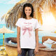 T-shirt blanc décoré d'un arc rose. Personnalisez et ajoutez un nom. Texte : Mariée d'équipe. Elle noue le noeud.