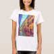 L'image présente un t-shirt blanc avec une empreinte vibrante et colorée d'une scène de rue charmante. L'oeuvre capture une ruelle pittoresque, peut-être dans une ville européenne, bordée de bâtiments aux tons chauds de jaune, d'orange et de rouge. La rue pavée reflète un mélange de teintes vives, ajoutant à l'atmosphère dynamique et accueillante de la scène. Le ciel au-dessus est un mélange de bleu et de vert doux, ce qui renforce l'attrait artistique général. Ce t-shirt allie confort et style, ce qui en fait un choix parfait pour les amateurs d'art et de culture. L’ajustement décontracté et le tissu doux en font une pièce idéale pour l’usure décontractée, tandis que le design accrocheur en fait une pièce de choix dans n’importe quelle armoire. Idéal pour un usage quotidien ou comme cadeau unique, ce t-shirt est parfait pour les amateurs d'art, les voyageurs ou toute personne qui cherche à ajouter une touche de couleur à leur tenue.