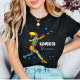This black badminton queen shirt features a high-contrast multicolored abstract athlete design. The vibrant colors of the badminton player silhouette pop against the dark fabric, creating a professional and sleek athletic outfit. An ideal badminton gift for the player who dominates the net. Durable and stylish badminton apparel for match days, practice, or casual wear.