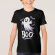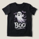 Un design de T-shirt Halloween amusant et éffrayant, avec un adorable fantôme de dessin animé entouré de chauves-souris ludiques, avec le mot "Boo" en caractères gras et stylisés. Parfait pour ajouter une touche d'esprit d'Halloween à votre garde-robe, ce design est idéal pour toute personne qui aime les tenues d'Halloween mignonnes et festives.