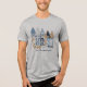 Chemise Tri-Blend pour hommes Christian Joyeux Noël avec un design typographique et des arbres de Noël bleus modernes, croix et nom de famille personnalisé. Personnalisez facilement le nom et changez le type et la couleur du t-shirt - Kate Eden Art