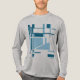 Un design d'art abstrait est présenté, composé de formes et de lignes audacieuses, turquoise foncée et bleu clair, inspirées du style moderne du milieu du siècle. Photo ici sur un t-shirt Tri-Blend "gris athlétique" à manches longues en impression classique, avec d'autres styles et couleurs disponibles. Le design projette une qualité artistique, raffinée et polie pour un ajout polyvalent et élégant à votre tenue décontractée et quotidienne (que ce soit à la maison, en socialisant avec des amis, en jouant au sport ou en courant à propos de la ville). Le design de chemise comme "art portatif" express également un sens de votre style individualisé, contribuant à un sentiment d'être "ensemble" et créatif dans vos choix d'armoires personnelles.