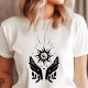 Offrez-vous l'énergie céleste avec cette chemise d'inspiration boho, qui a les mains en tendant vers un soleil radiant et une lune en croissant. Le design minimaliste est orné d'accents feutrés et de détails cosmiques, créant une puissante déclaration visuelle. Parfait pour ceux qui aiment l'esthétique boho et le symbolisme spirituel, cette chemise combine la nature, le cosmos, et un sens de l'autonomisation. Les couleurs noir et blanc rendent l'ensemble polyvalent pour n'importe quelle armoire, tandis que le design saisissant ajoute un élément de mystère et de profondeur. Portez cette chemise pour canaliser les vibrations positives et l'énergie céleste partout où vous allez.