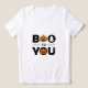 Faites un éffrayant sourire avec ce t-shirt "Boo To You" d'Halloween qui combine typographie moderne audacieuse avec des icônes fantômes et citrouilles. Le design épuré et simple d'un arrière - plan transparent en fait un choix parfait pour n'importe quelle armoire d'Halloween.