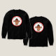 The perfect shirt for a casual game of bowling! This design is the same on the both the front and the back and features a turkey wearing sun shades and holding two bowling pins, with the words "Turkey Hunter" is in bold font at the top.