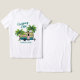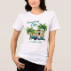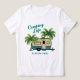 T-shirt de camping tropical avec petite image de camper rétro. Deux palmiers entourent un petit RV avec "Camping Life" en texte bleu d'ombre. Le texte "Florida Keys" est facile à changer au nom de votre terrain de camping préféré, de votre ville natale ou de votre nom de famille.