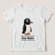 Un T-shirt enfant avec l'illustration d'un pingouin gentoo ; un design avec modèle texte personnalisable pour votre nom.
