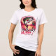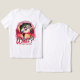 Ce t-shirt blanc présente un grand graphique d'une basse noire qui saute de l'eau. Une canne de pêche et un moulinet sont placés à côté du poisson. Le texte "Quoi ?" est empilé au-dessus de "FILLES FISH TROO" dans une police rose et rouge stylisée. Ce design célèbre avec joie les femmes qui aiment la pêche.