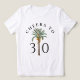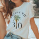 A bright Cheers to 30 tshirt for the woman turning thirty — think sunshine and palm trees. This customizable tropical birthday party gift coordinates with a matching invitation and other party supplies. Featuring a lush palm tree motif in the center bordered on each side with the birthday age that you can personalize with any age desired.