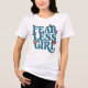 Faites une déclaration intrépide en turquoise. Ce tee-shirt "Fearless Girl" audacieux présente des papillons aux tonalités rouge, bleu et lavande. Il s’agit d’un design coloré et confiant pour les filles et les femmes qui dirigent avec courage, force et juste la touche de fantaisie.