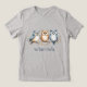 3 Chouettes Sages à l'avant et à l'arrière de cette chemise. Citations de la vie des hibou. Blues et marron. Design simple,