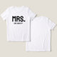T-shirt MRS établi personnalisé avec la date de votre mariage. Montrez le monde quand vous êtes officiellement devenu une Mme avec ce tee pour la mariée avec MRS. en grandes lettres noires, avec un coeur comme point, et votre mariage date en dessous. T-shirt femme avec un design cool, simple et mais romantique pour le missus. Parfait pour les jeunes mariés et pour célébrer votre anniversaire de mariage!
