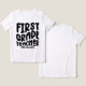 Accueillez vos élèves en classe pour la nouvelle année scolaire avec ce t-shirt au design typographique rétro noir inspiré « Enseignant de première année ». Rendez-le encore plus spécial en le personnalisant avec votre nom ! Cela ferait un excellent cadeau pour un enseignant dans votre vie ! Pour toute question ou demande concernant ce design, veuillez nous contacter via le chat ; nous serons ravis de vous aider !