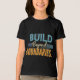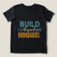 Le design des t-shirts comporte l'expression "Build Beyond Boundaries" qui apparaît clairement dans une typographie moderne et audacieuse. Les mots sont placés contre un arrière - plan dynamique et abstrait qui suggère le mouvement et le potentiel illimité. La conception d'ensemble traduit un sentiment d'ambition, d'innovation et de pouvoir de surmonter les obstacles.
