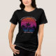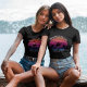 Cool matching girl's beach trip women's t-shirts for an island cruise or coastal bachelorette party. Features beautiful palm trees in front of a pretty pink beach sunset on a black tee. Perfect custom shirts for your summer trip to the coast.