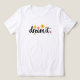 A soft, uplifting design featuring the word “dream it” in flowing, hand-lettered typography. The design also includes daisy-like flowers in shades of yellow, pink, green, and orange, with fresh green leaves adding a light, natural touch. The overall style feels bright, hopeful, and playful—perfect for everyday wear and spreading positive vibes.