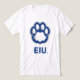 Cette conception comporte deux éléments distincts représentant l'Eastern Illinois University (EIU). En haut, un empreinte de patte de panthère stylisé est affiché en évidence. L'empreinte de patte est rendu en bleu avec un contour gris, créant un symbole audacieux et reconnaissable des Panthers EIU. Sous l'empreinte de patte, l'acronyme "EIU" est présenté dans une forte police sans-serif, renforçant l'identité de l'université. L'ensemble du design est placé contre un arrière - plan blanc et propre pour un contraste maximal. Ce logo est utilisé sur différentes plateformes pour représenter l'Université de l'Illinois oriental et ses équipes sportives, les Panthers. Montrez votre esprit EIU avec ce logo unique et puissant !