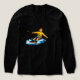 An energetic man wakeboarding with a singer tshirt