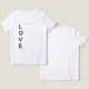 Un design minimaliste avec le mot "AMOUR" disposé verticalement, accompagné de descriptions poétiques qui captent l'essence de l'amour par le rire partagé, les regards doux, les mains chaudes et le confort tranquille de la compagnie.