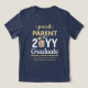 Montrez votre joie pour le diplômé avec une photo élégante personnalisée "Parent fier" tshirt de remise de diplômes pour femmes. L'image et le texte de ce modèle sont simples à personnaliser, et tous les libellés, couleurs et polices peuvent être changés avec l'outil de design Zazzle. Il peut être customisé pour n'importe quel membre de la famille ou un ami, comme une soeur, mère, grand-mère, tante, cousin, etc. (IMAGE PLACEMENT CONSEIL : Une façon simple de positionner une photo exactement comment vous voulez est de la rogner avant de télécharger sur le site Zazzle.) Le design bleu marine et or comprend la photo de la diplômée, le nom, l'année de classe, l'école et un espace supplémentaire facultatif pour une citation inspirante, un dicton motivant ou un autre texte. Il dispose également d'élégantes typographies modernes et d'un script de calligraphie élégant. Veuillez noter que l'or est imprimé en couleur et non en métal. Ce T-shirt fait une idée de tenue cool pour une cérémonie de remise des diplômes ou une fête de remise des diplômes. Félicitations au diplômé !