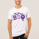 Halloween Boo Skull Bats Typographie moderne Tri-Blend Shirt présente le texte "Boo" dans la typographie moderne violet avec des chauves-souris, des étoiles et un crâne. Parfait pour les fêtes et célébrations d'Halloween. Créé par Evco Studio www.zazzle.com/store/evcostudio