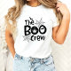 T-shirt "Boo Crew" amusant Halloween avec toiles éffrayantes, araignée et chauves-souris. Design noir avec un léger effet de recouvrement de grunge texturé. Prenez un ensemble correspondant pour l'ensemble de l'équipage. Idéal pour les fêtes d'Halloween, tour ou traitement, et photos de groupe mémorables.