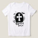 T-shirt "Éffrayant Town" amusant avec pierre de tête, croix, araignée, crâne, chauves-souris et fleurs. Design noir avec un léger effet de recouvrement de grunge texturé. La chemise éffrayante parfaite pour les fêtes d'Halloween, le tour ou le traitement, et des photos de groupe mémorables.