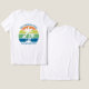 Ces t-shirts de plage tropicale personnalisés cool, sont ornés de 3 palmiers, encadrés d'un ciel bleu et orange, agrémentés de jaune et de vert sur la côte. Customisez pour un séjour en famille de tee - shirts pour votre escapade sur la côte ce printemps, vacances d'été ou de croisière sur l'océan.