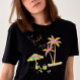 Le T-shirt est de très bonne qualité 👍 ✌️ très belle impression qui tient bien au lavage, très bel effet de l’impression en dégradé arc-en-ciel-ciel sur fond noir, très contente .