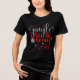 Jingle All The Way Christmas Bells Womens T-Shirts présente le texte "Jingle all way" en argent et en typographie rouge décoré d'étoiles et de cloches argentées. Parfait pour la famille et les amis pour Noël et les vacances. Créé par Evco Holidays www.zazzle.com/store/evcoholidays