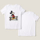 Une Mickey Mouse de style classique se détend sur une clôture en bois, portant ses emblématiques shorts rouges, ses chaussures jaunes et un sourire joyeux. L'aspect vintage de la bande dessinée donne une impression nostalgique, capturant un moment calme et heureux sous un ciel ouvert. Parfait pour les amateurs de Disney et les amateurs de rétro animation.