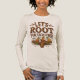 Célébrez la gentillesse et la communauté avec ce design rustique de t-shirts avec le texte "RACINE DE NOUS-MÊMES" dans une police de caractères charmante dessinée à la main. Des carottes, oignons et pommes de terre illustrés apportent une touche ludique, dressés contre un arrière - plan en bois beige. Parfait pour diffuser la positivité et des vibrations saines dans le style quotidien!