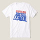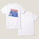 Ce graphique patriotique de la Ligue de la Justice est incliné sur le côté et a l'expression "Unis nous tenons" écrite en haut du logo de la Ligue de la Justice.