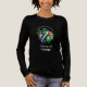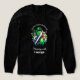 T-shirt to help spread awareness for Bipolar Disorder with a black, white and green striped awareness ribbon and flowers. An inspirational quote with the words, "Living with Bipolar, thriving with courage.”