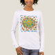 This fantastic long sleeved Tee shirt features a design of a brightly coloured circle of lizards in a mandala design against a white background, drinking from a desert watering hole, against an abstract design. An unusual gift perfect for a lizard lover, ideal to team with a matching all over print leggings for a truly individual look.