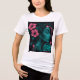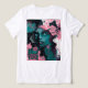 Composición más expresiva y abstracta: rostro femenino con contrastes bicolor, trazos fluidos, manchas y líneas que generan movimiento y profundidad. La flor central actúa como sello botánico de la colección, manteniendo la estética neon teal & pink para una línea uniforme en cojines, sudaderas y pósters.