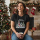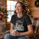 Noël Moo-y Cow Farm Festive Vacances Tri-Blend Shirt présente le texte "Moo-y Christmas" dans la typographie de script de calligraphie moderne avec une vache festive entourée d'arbres de Noël et de cadeaux de vacances. Parfait pour les cadeaux de Noël, fêtes de Noël et fêtes de fin d'année, anniversaires et plus encore. Créé par Evco Studio www.zazzle.com/store/evcostudio