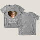 Pour un t-shirt gris et foncé. Personnalisez et ajoutez un nom et une photo dans le cadre en forme de coeur. Texte blanc.